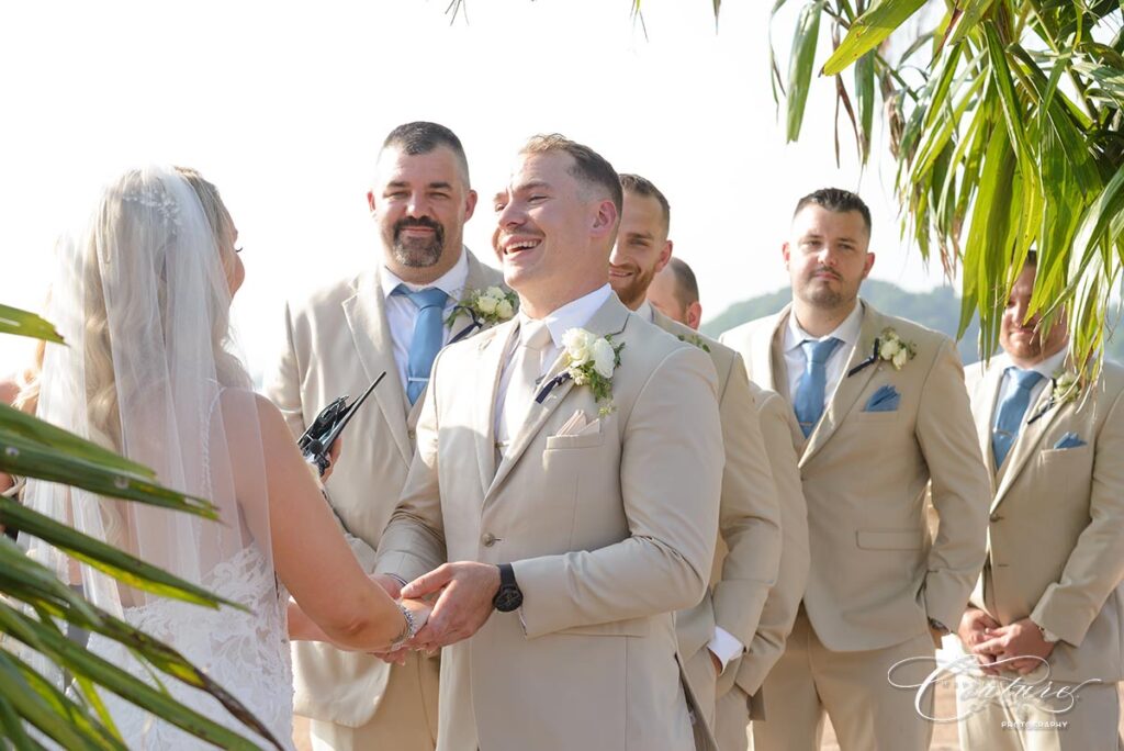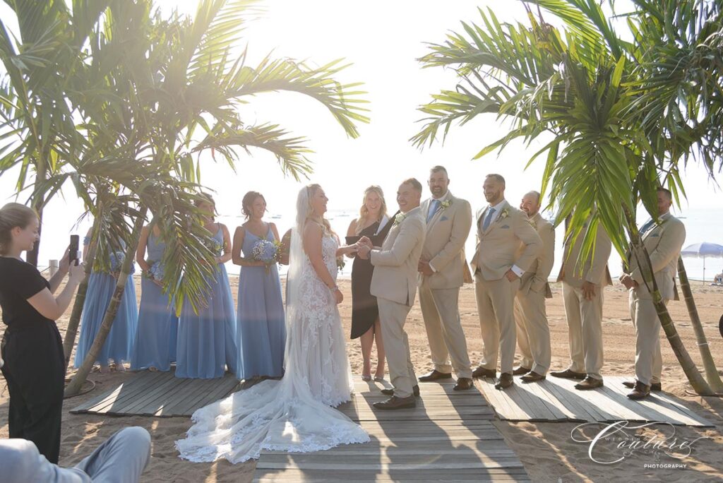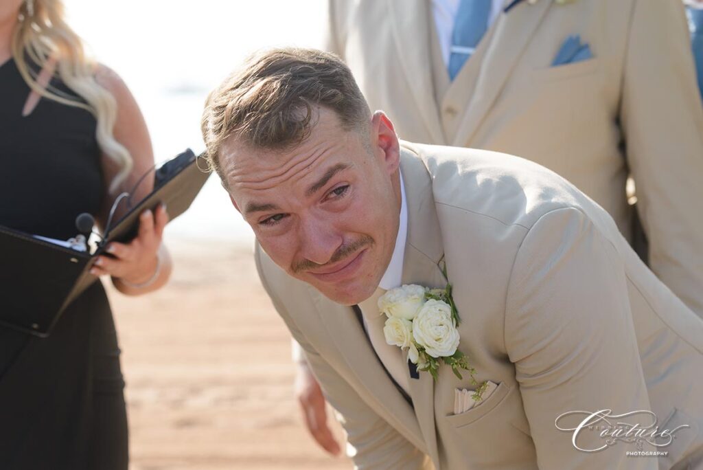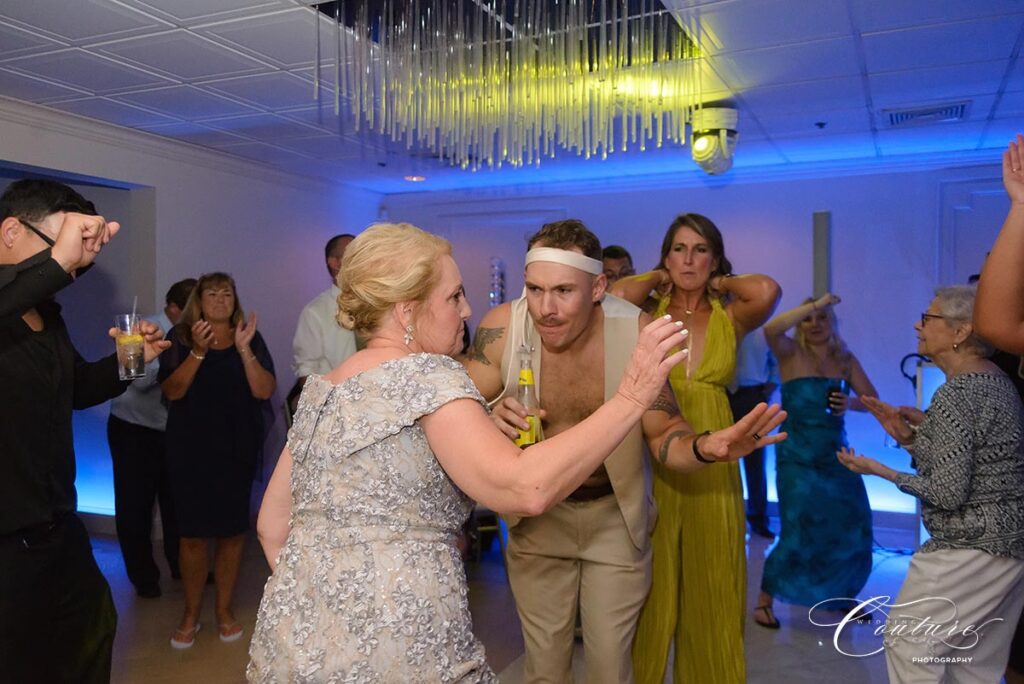 Dan was already tearing up at the first look and basically didn’t stop until the ceremony was over (so sweet). Then came the table dash—total madness, but SO worth it. And by the end of the night? Dan was down to just his vest, with his necktie tied around his head. That’s when you know you threw one hell of a wedding.