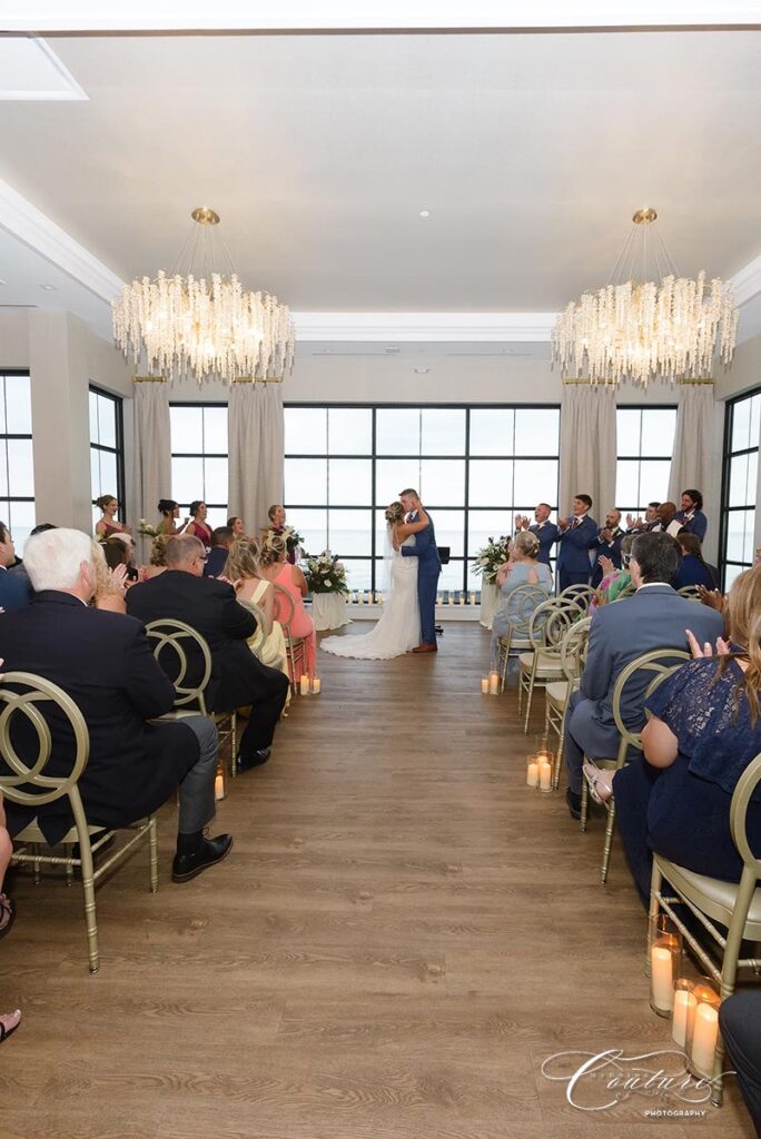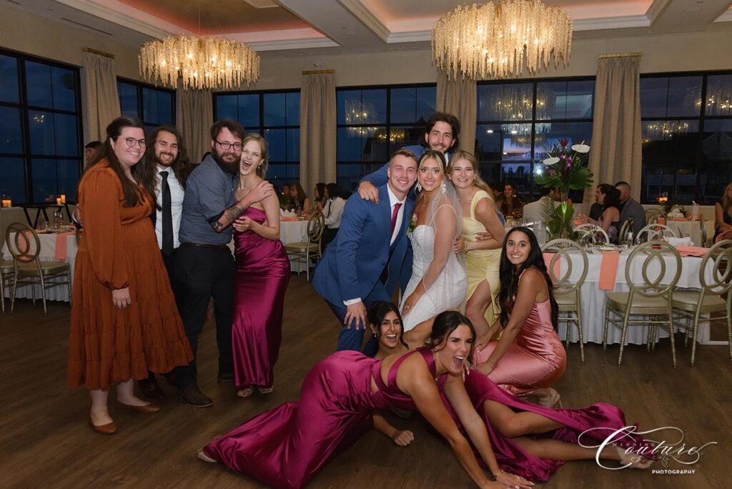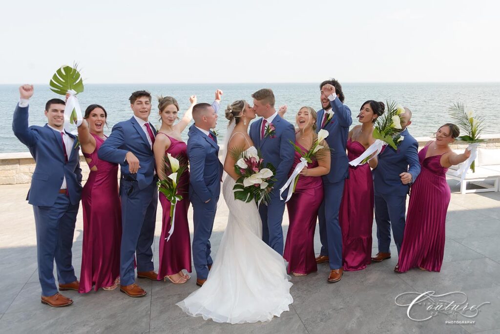 Kaylee and Charles‘ Wedding at Tyde at Walnut Beach in Milford, CT was such a blast. These two were so laid back and fun, and their whole day had the best energy. Charles was in tears pretty much all day (in the sweetest way), and the wedding party kept things hyped from start to finish. At the reception, the groomsmen even surprised Charles with a lap dance, which had everyone cracking up.