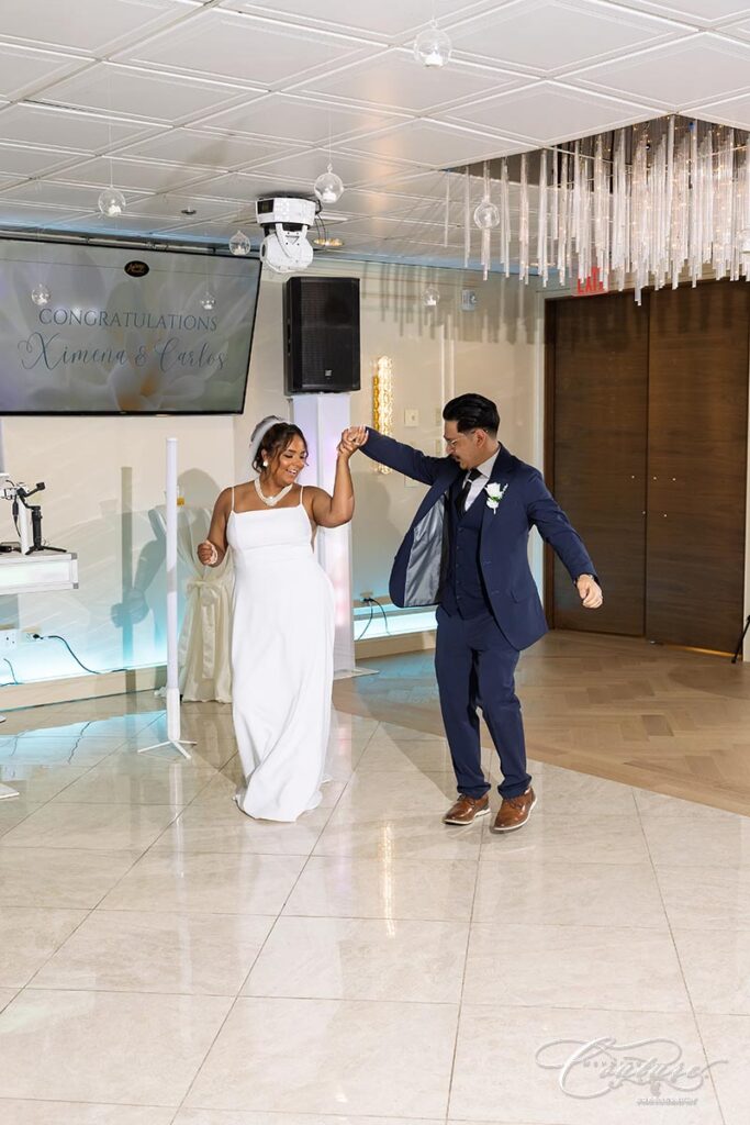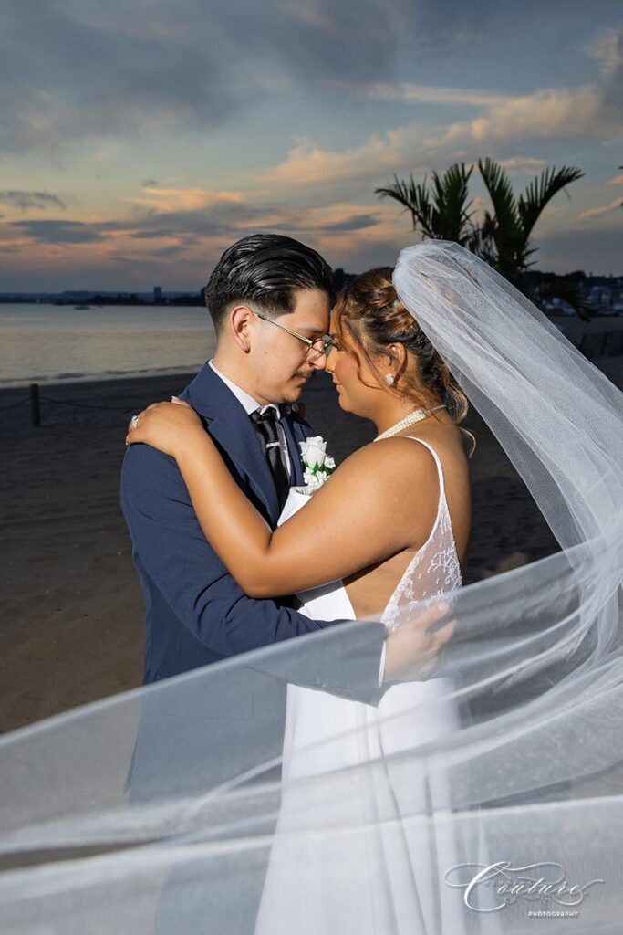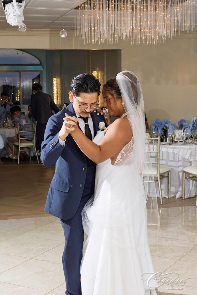 Ximena and Carlos‘ Wedding at Anthony’s Ocean View in New Haven, CT was the perfect mix of simple and elegant. The couple looked amazing—Ximena in her timeless white gown and Carlos in a sharp navy suit, fitting perfectly with their blue motif. The beach setting gave them the most gorgeous sunset backdrop, making their portraits extra special. Between the ceremony and reception, guests enjoyed live music from a mariachi band which added so much energy and personality to the celebration.