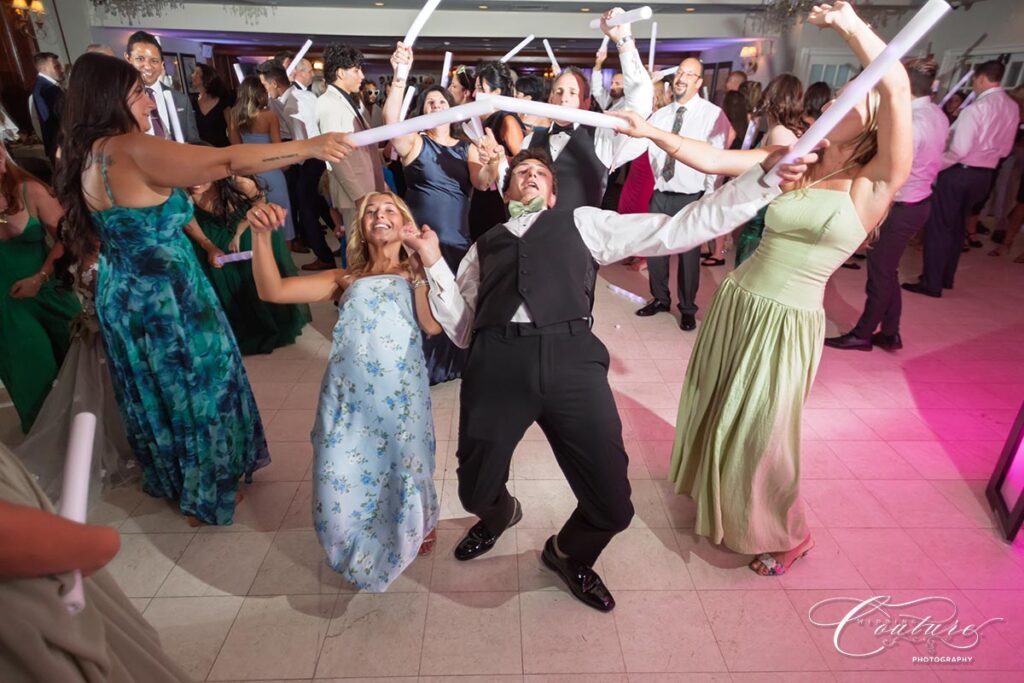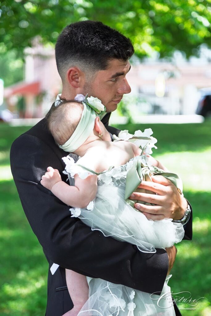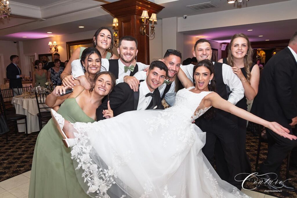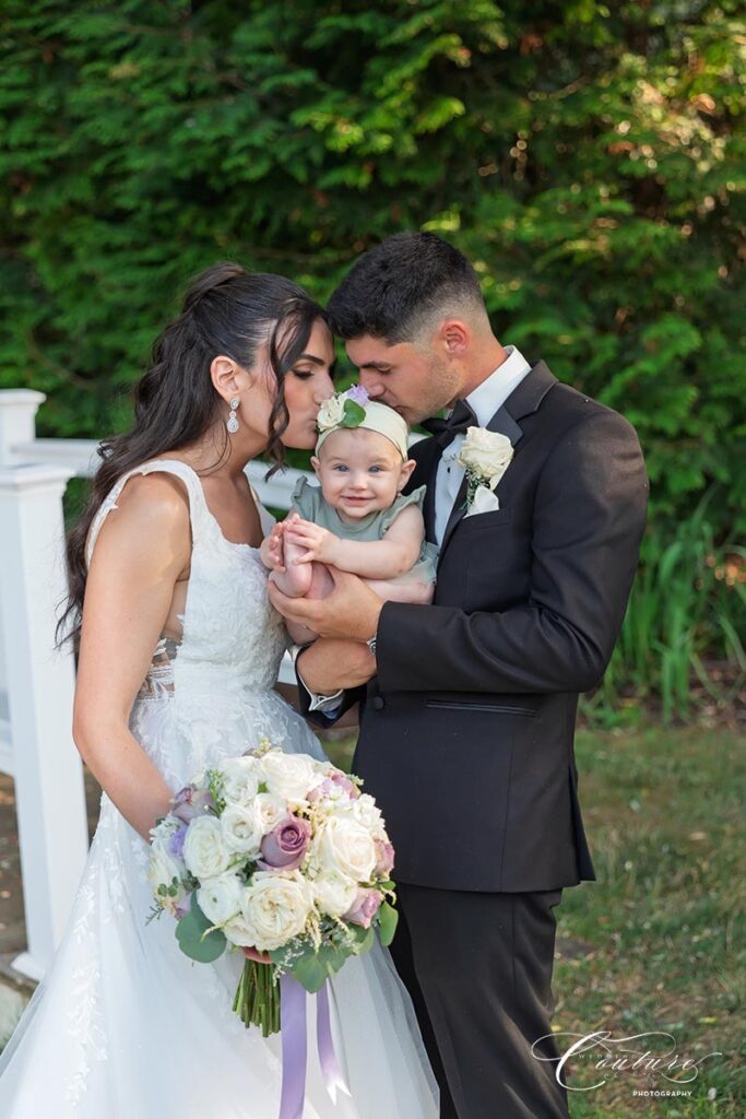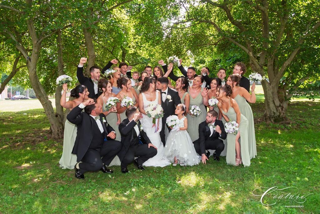 Gabriella and Jake‘s Wedding at The Woodwinds in Brandford, CT was filled with nonstop laughter and the best kind of surprises. Their daughter completely stole the show as the flower girl—rolling down the aisle in her little wagon while everyone melted. Later, the father of the bride pulled a prank on Jake during the first look that had the whole group cracking up. Even the wedding party kept the fun going with hilarious entrances, each pair adding their own twist. And of course, Gabriella and Jake topped it all off by waving a giant flag with their daughter’s face on it—it was impossible not to laugh.